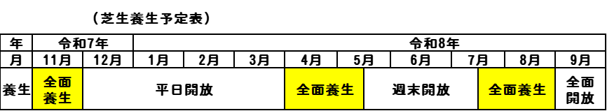 尚、当面の間は下記スケジュールで芝生の養生を行います。